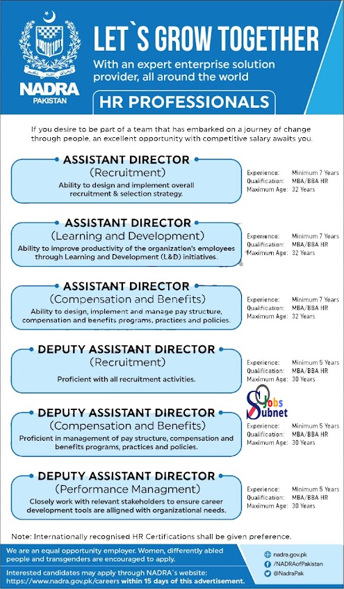 invited through online website. In these Latest Jobs 2022 of NADRA the eligible