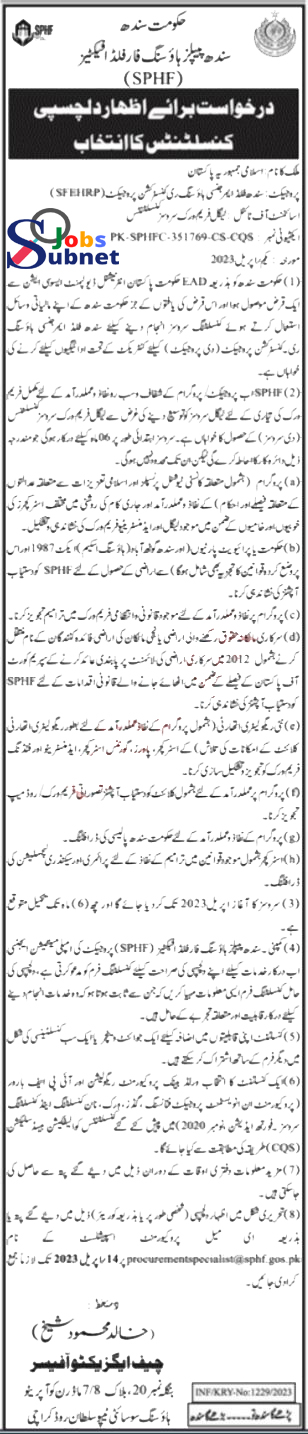 these Latest Jobs 2023 of Sindh Peoples Housing for Flood Karachi the eligible