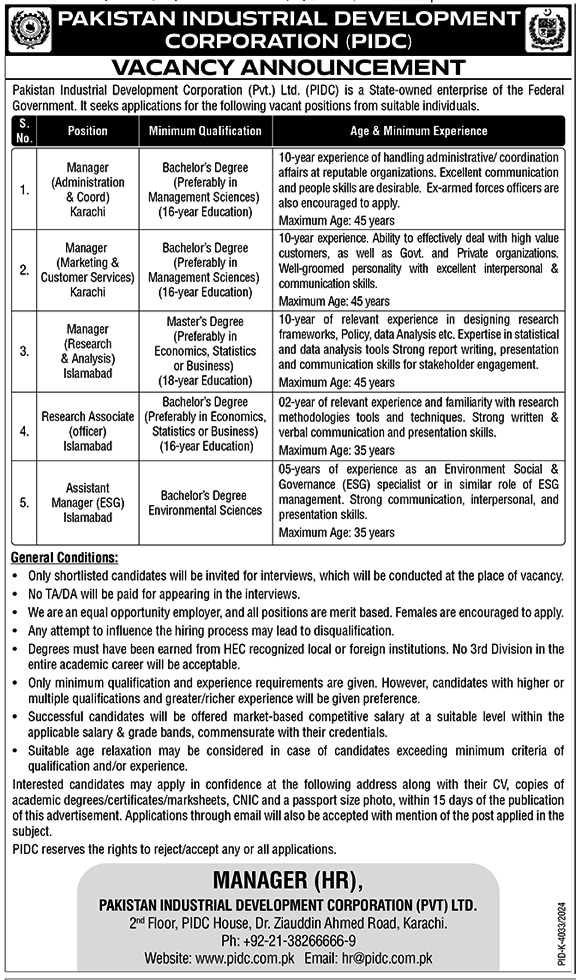 Pakistan Industrial Development Corporation Jobs 2025 Advertisement